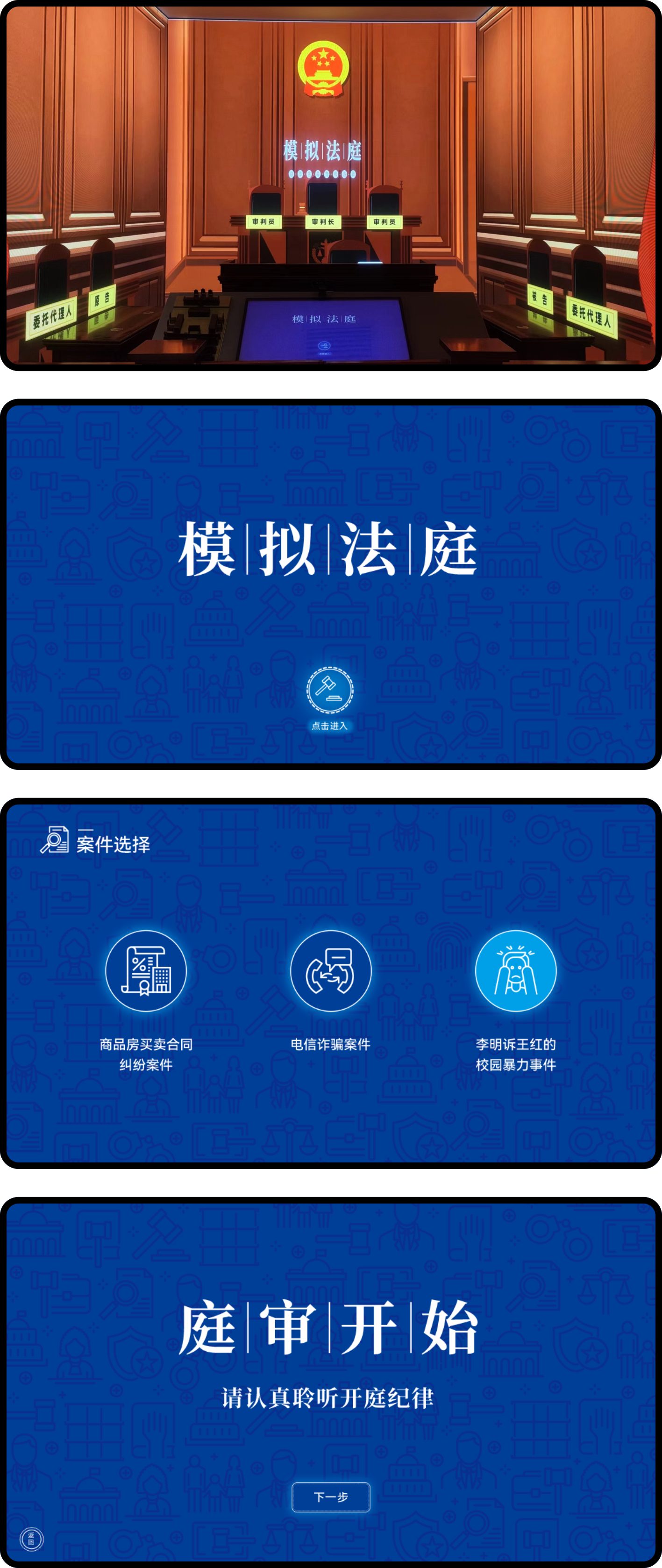根據(jù)案件講述,通過屏幕點(diǎn)擊選擇不同的案件,出現(xiàn)不同的選擇題做出正確的答案。