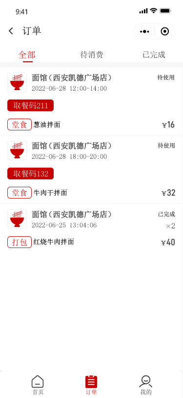 1、訂單頁面分三大塊,全部訂單、待消費訂單和已完成訂單;