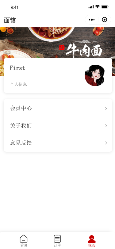 4、頁面下方是三個功能塊兒,會員中心、關于我們和意見反饋,點擊即可進入相對應的頁面;