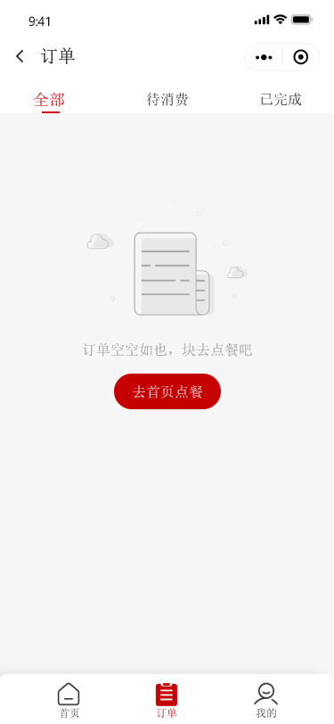 2、在沒有訂單的情況下會展示去首頁點餐的按鈕;