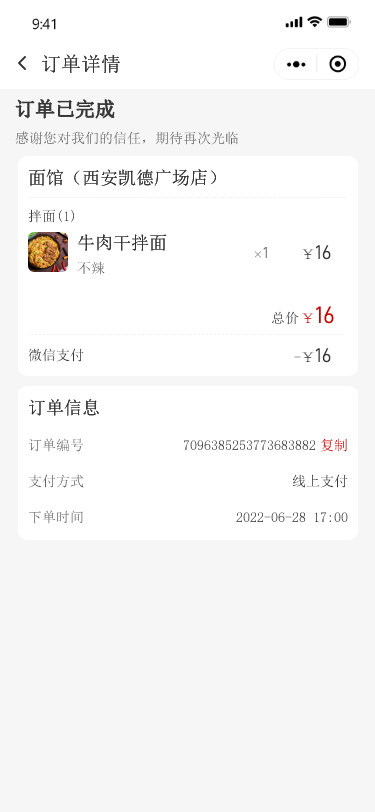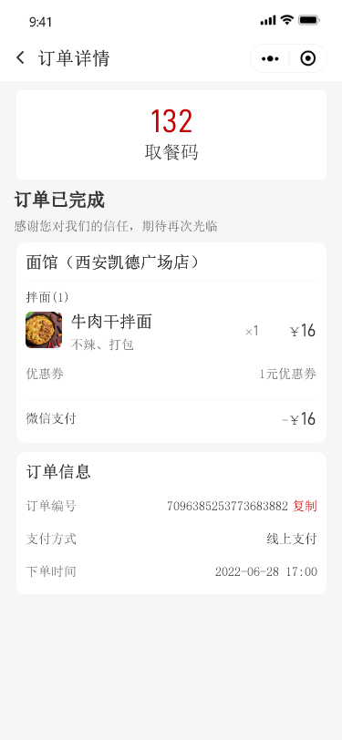 2、剛下的訂單,頁面最上方會展示取餐碼,當食物做好,過了時間后,取餐碼將不會在顯示;