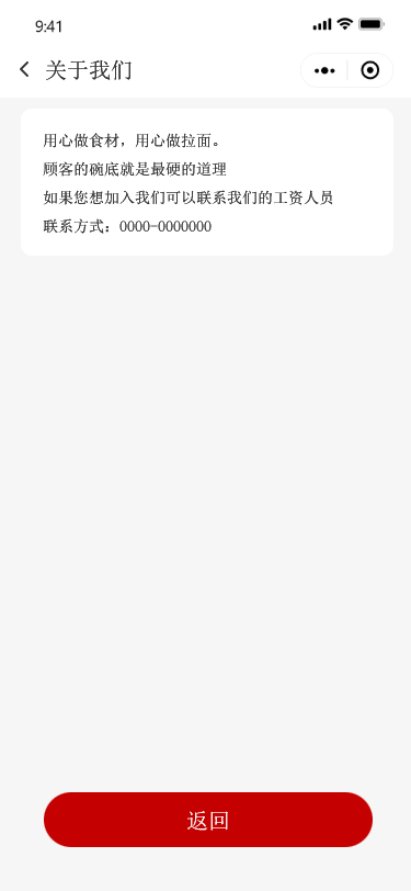 關于我們頁面戰(zhàn)士的內(nèi)容是關于店鋪的信息,開店的宗旨、聯(lián)系電話等。
